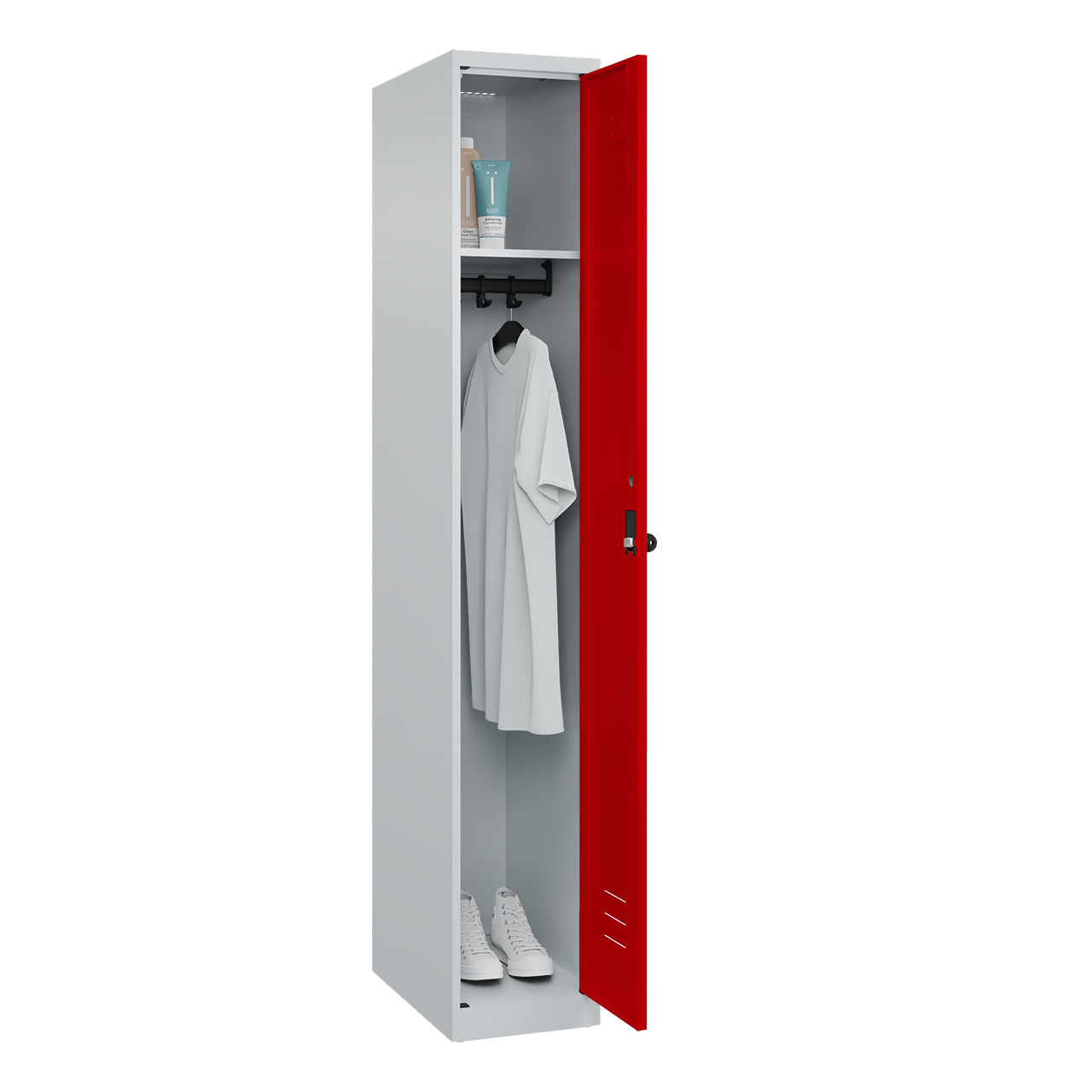 • schmale Seitenkanten für homogene Optik wenn mehrere Spinde nebeneinander aufgestellt werden, ohne Doppelungen an den Spindstößen