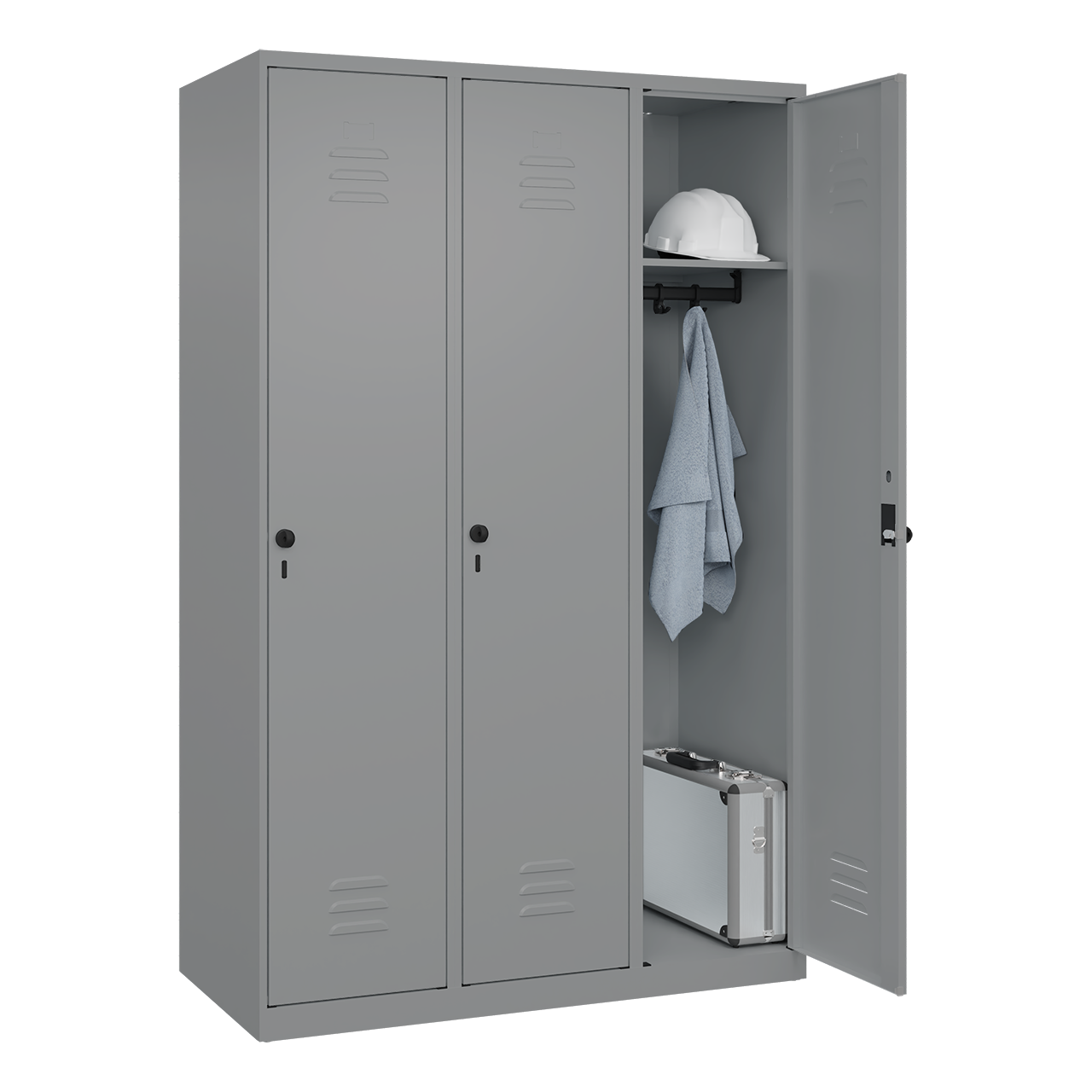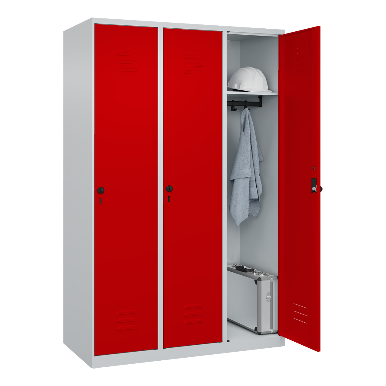 • schmale Seitenkanten für homogene Optik wenn mehrere Spinde nebeneinander aufgestellt werden, ohne Doppelungen an den Spindstößen