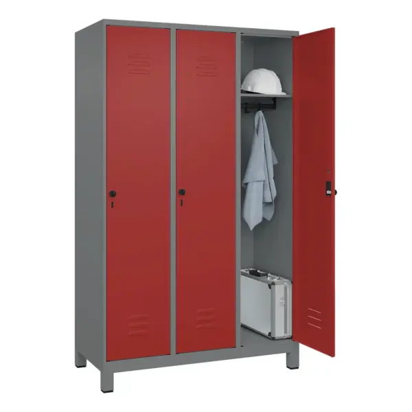 - schmale Seitenkanten für homogene Optik wenn mehrere Spinde nebeneinander aufgestellt werden, ohne Doppelungen an den Spindstößen