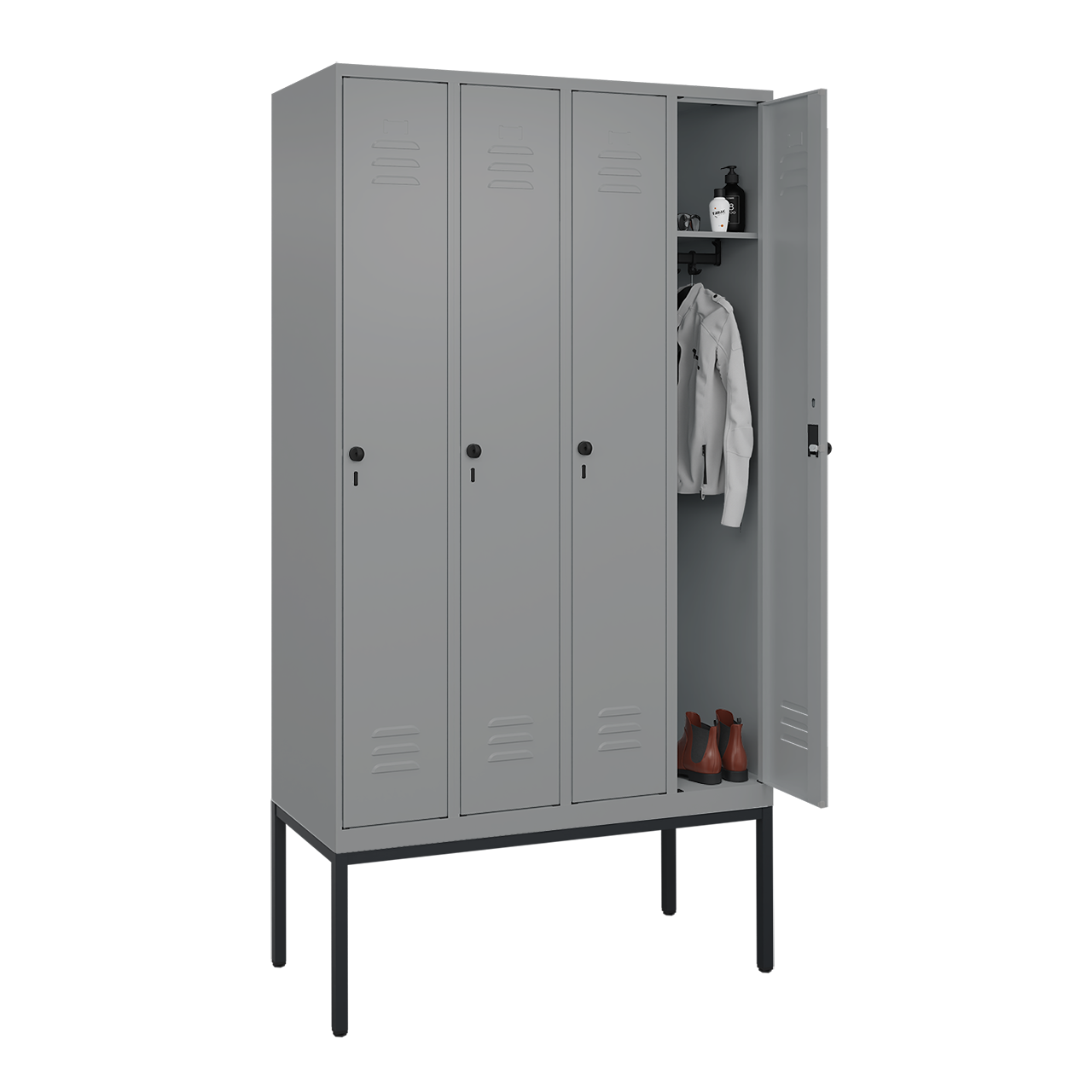 Umkleidespind mit untergebautem Gestell